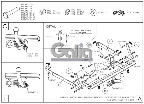 Κοτσαδόρος για CITROEN Evasion, van, 1994-2001 (με βίδες)