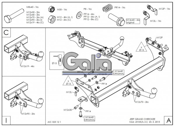 Κοτσαδόρος για JEEP Grand Cherokee, SUV, 2010- (με βίδες)