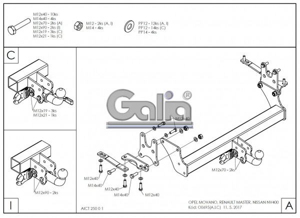 Κοτσαδόρος για OPEL Monano, flatbed, 2010- (αυτόματος)Πίσω μονός τροχός.