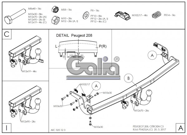 Κοτσαδόρος για PEUGEOT 208, hatchback, 2012- (αυτόματος)