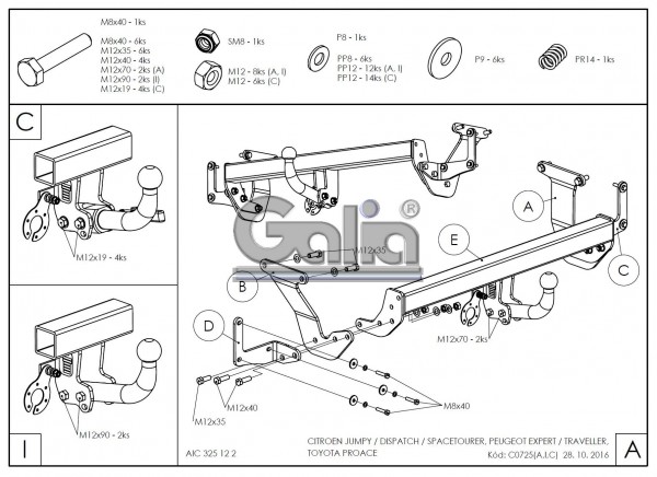 Κοτσαδόρος για PEUGEOT Traveller, minibus, 2016- (με βίδες)