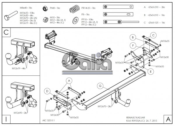 Κοτσαδόρος για RENAULT Kadjar, SUV, 2015- (με βίδες)