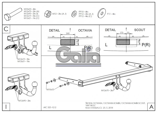 Κοτσαδόρος SKODA OCTAVIA III 5 doors, Kombi, 4×4, RS, 02.2013 / 10.2019 (με βίδες)