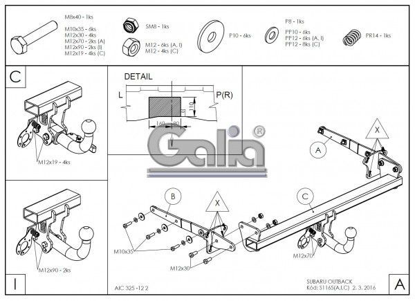 Κοτσαδόρος για SUBARU Outback, Crossover, 2015- (με βίδες)