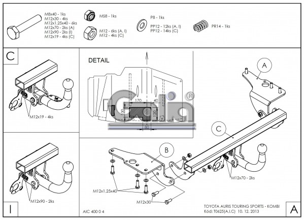 TOYOTA Auris, Κοτσαδόρος, kombi, 2013- (με βίδες)