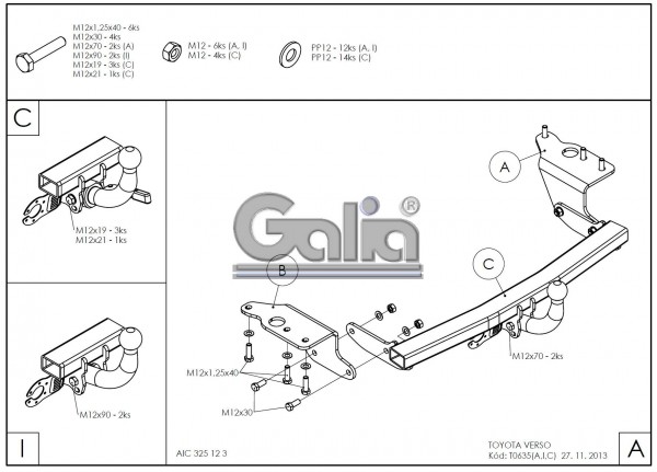 Κοτσαδόρος για TOYOTA Verso, MPV, 2009- (με βίδες)