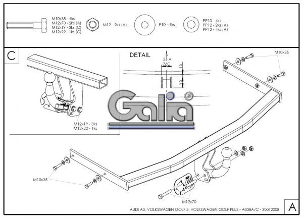 Κοτσαδόρος για VOLKSWAGEN Golf, 3θυρο, 5θυρο, 2008- (αυτόματος)