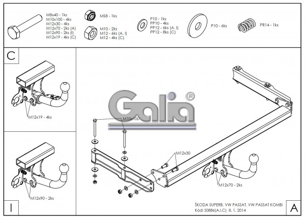 Κοτσαδόρος για VOLKSWAGEN Passat, sedan, 1996-2005 (με βίδες)