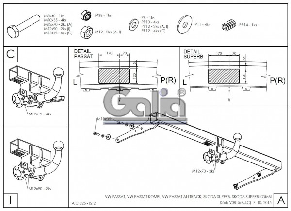Κοτσαδόρος για VOLKSWAGEN Passat, sedan, 2014- (με βίδες)
